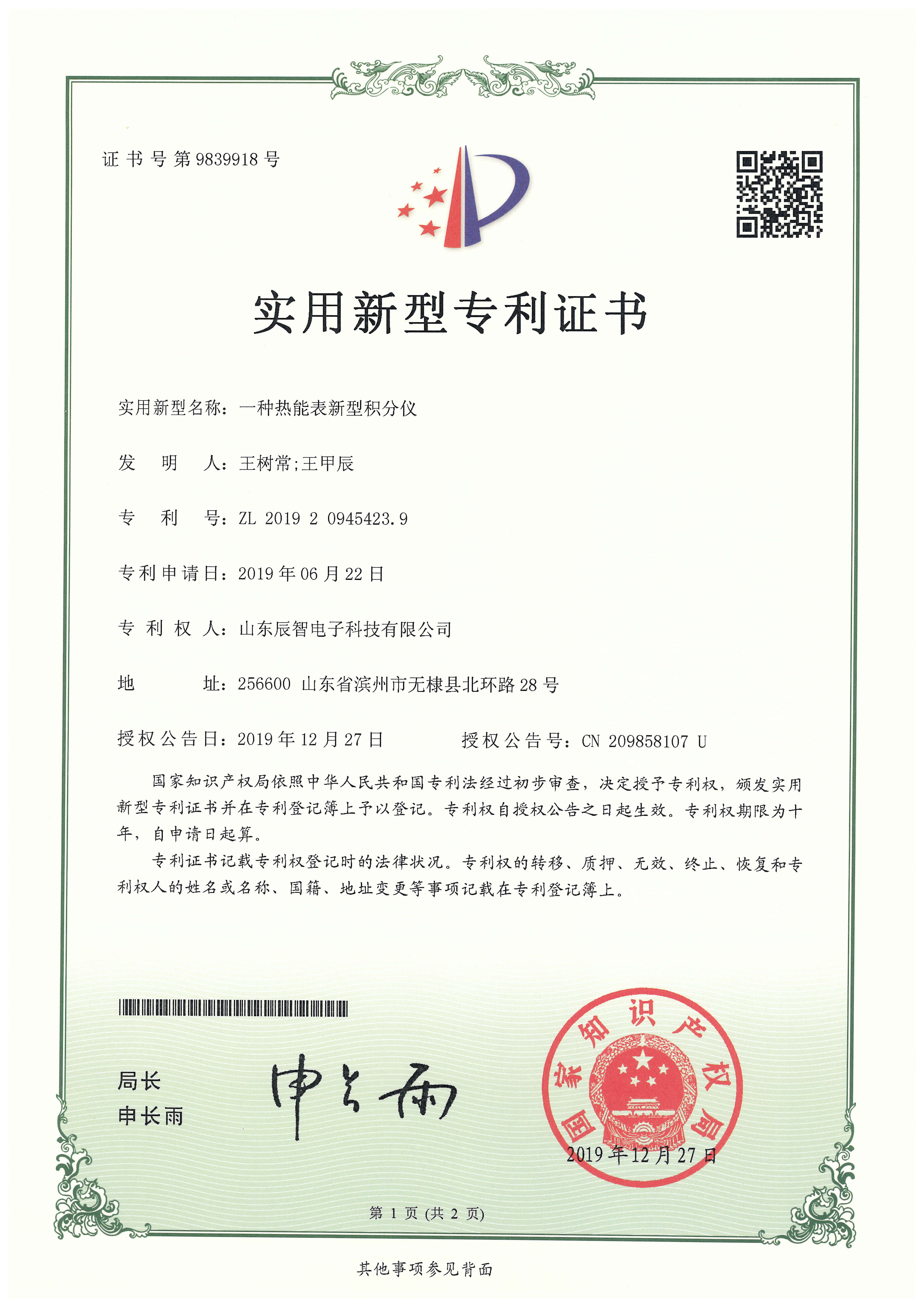 專利證書
